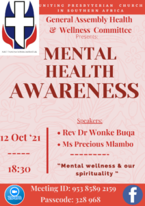 The UPCSA General Assembly Health and Wellness Committee (HWC) recognizes October 2021, Mental Health Awareness month, by hosting a webinar to bring to the fore the reality and impact of mental health on our general well-being.