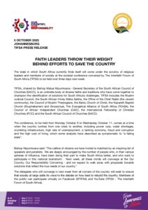 FINAL_Press Release – Faith leaders throw their weight behind efforts to save the country_5 Oct 2023